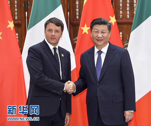 習近平歡迎倫齊來華出席二十國集團領導人杭州峰會。習近平指出,近年來,中意關系取得長足進步,雙方秉承相互尊重、互利共贏精神,深化政治互信,擴大務實合作,使兩國人民獲得實實在在的利益。中方愿同意方攜手努力,不斷推進兩國全面戰略伙伴關系向前發展。我們要堅持兩國戰略互信大方向,尊重彼此核心利益和重大關切,密切兩國政府、議會、政黨交流合作。要堅持互利共贏原則,優勢互補,實現共同發展。中方歡迎意方積極參與“一帶一路”建設。我們要以古老文明為依托,密切人文交流,深化傳統友誼。要加強在國際和地區事務中的協調和配合,努力構建以合作共贏為核心的新型國際關系。要將中歐和平、增長、改革、文明四大伙伴關系落到實處,共同維護中歐關系良好發展勢頭。