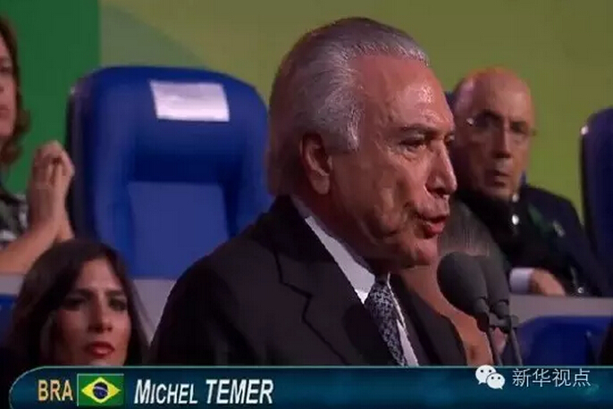 ??? 值得一提的是,出席杭州峰會的特梅爾,奧運會時的身份還是代總統(tǒng),當?shù)貢r間8月31日,特梅爾正式就任巴西總統(tǒng),杭州峰會成為他就職后出席的首個國際會議。 里約奧運會開幕式上的特梅爾↓
