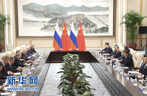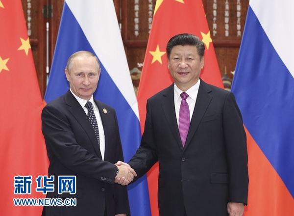 習近平歡迎普京來華出席二十國集團領導人杭州峰會。習近平指出,普京總統今年6月訪華期間,我們隆重慶?!吨卸砟类徲押煤献鳁l約》簽署15周年,共同簽署并發表3份重要聯合聲明,還見證簽署近30個務實合作協議,充分展示了兩國深化全面戰略協作伙伴關系的堅定決心,全面體現了雙方對重大國際和地區問題的共同立場,發出了中俄共同維護全球戰略安全、世界和平穩定的一致聲音。雙方要落實好我和總統先生達成的各項共識和協議,推動中俄各領域合作不斷取得新成果。
