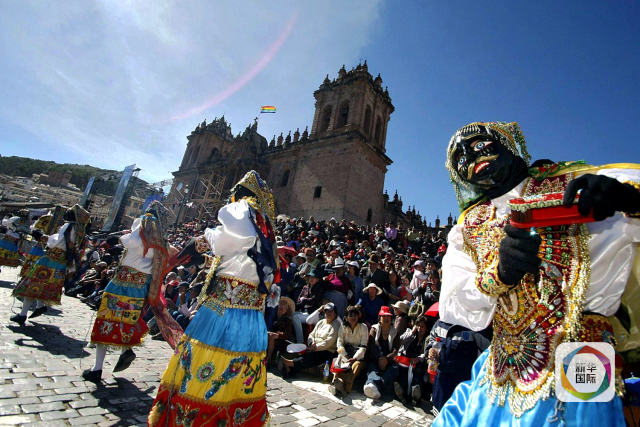 2011年7月7日,在秘魯庫(kù)斯科,人民在街頭表演,慶祝印加遺址馬丘比丘發(fā)現(xiàn)百年。新華社/法新