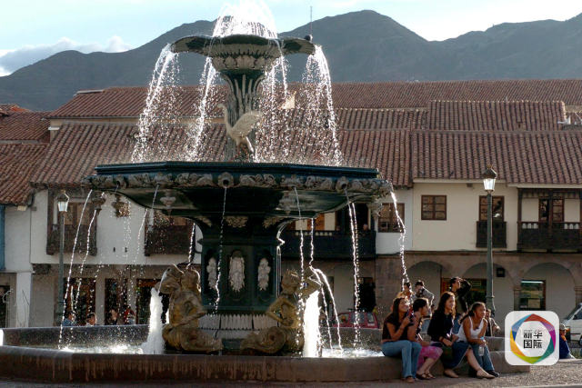 2004年12月6日,在秘魯庫(kù)斯科城廣場(chǎng),行人在噴泉旁休息。新華社記者汪亞雄攝