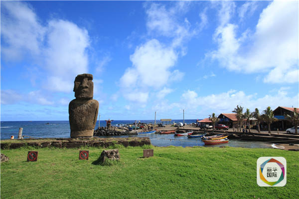 復(fù)活節(jié)島首府安加羅阿漁港。(新華社記者葉書宏攝)