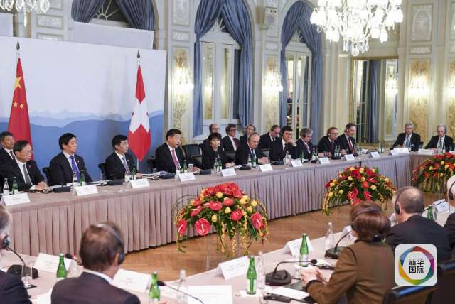 1月16日,國家主席習近平在伯爾尼同瑞士聯邦主席洛伊特哈德舉行會談。(新華社記者 蘭紅光 攝)