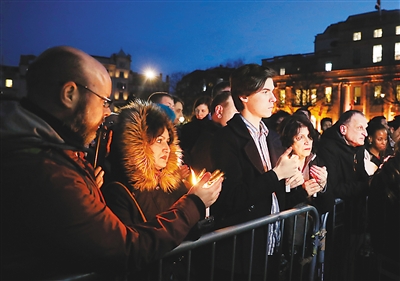 3月23日,在英國倫敦特拉法加廣場(chǎng),人們參加燭光守夜悼念活動(dòng)。新華社記者 韓 巖攝