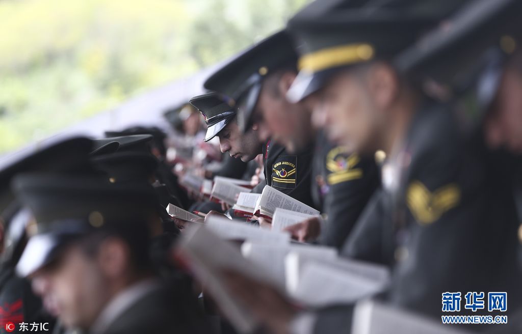 當(dāng)?shù)貢r(shí)間2017年5月18日,土耳其安卡拉,在憲兵和海岸警衛(wèi)學(xué)院體育場,土耳其憲兵參加集體讀書活動(dòng),打破“最多人一起讀書”吉尼斯紀(jì)錄,慶祝憲兵部成立178周年。包括土耳其憲兵、海岸警衛(wèi)隊(duì)及其家人在內(nèi)等5754人參加了這一集體活動(dòng)。(圖片來源:東方IC)
