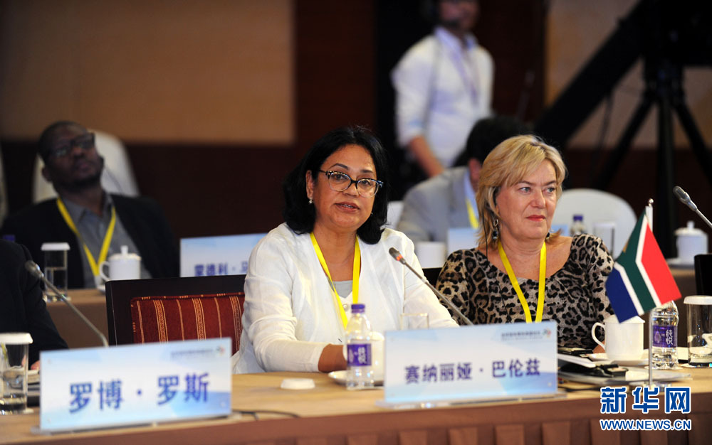 金磚國家媒體高端論壇開幕式6月8日在北京舉行。圖為論壇共同主席、南非獨立傳媒集團幕僚長賽納麗婭·巴倫茲女士發表演講。 新華網 孫韜 攝