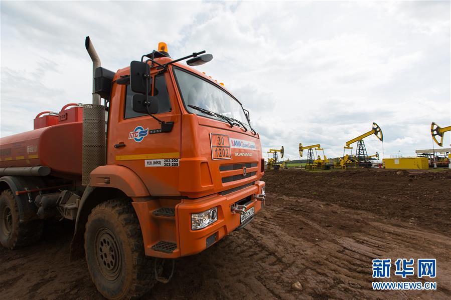 這是6月2日在俄羅斯伊熱夫斯克的UDM項目鉆井現(xiàn)場拍攝的作業(yè)車輛。新華社記者白雪騏攝