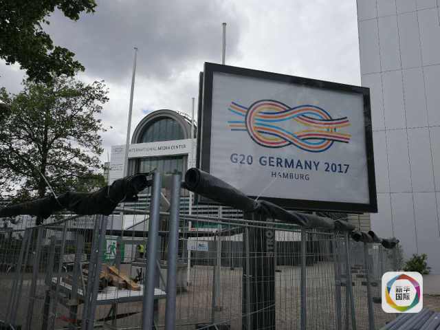 (漢堡峰會主場地外的媒體中心門口,新華社記者劉杰攝)