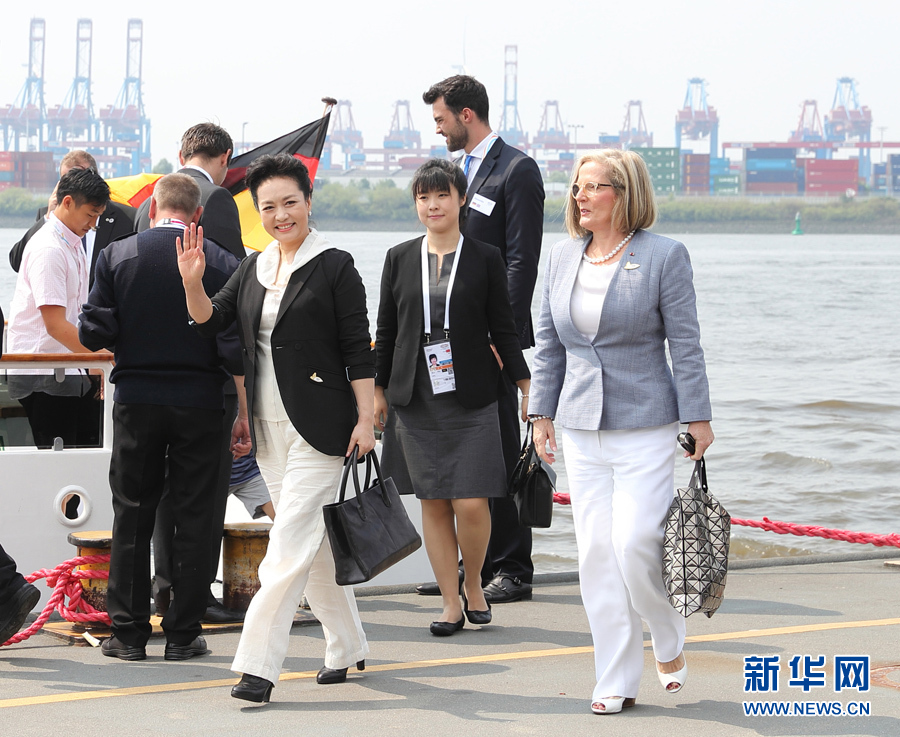 新華社德國漢堡7月7日電(記者孟娜)當地時間7日上午,應德國總理默克爾丈夫紹爾邀請,國家主席習近平夫人彭麗媛同出席二十國集團領導人第十二次峰會的部分代表團團長配偶乘船參觀漢堡港。