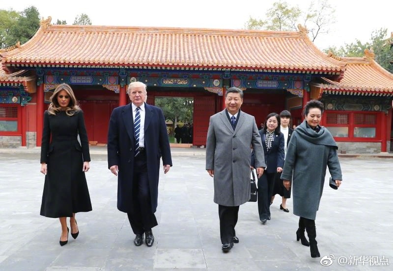 新華網(wǎng)北京11月8日電? 國家主席習近平和夫人彭麗媛11月8日陪同來華進行國事訪問的美國總統(tǒng)特朗普和夫人梅拉尼婭參觀故宮博物院。(攝影:新華社記者蘭紅光、劉衛(wèi)兵、謝環(huán)馳 據(jù)新華社“新華視點”微博報道)