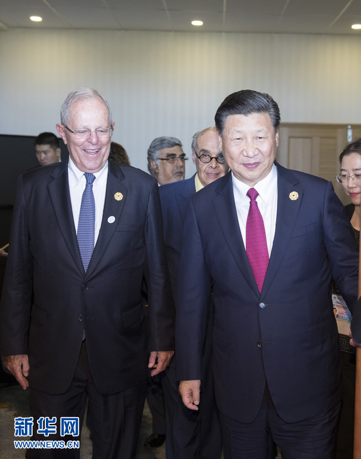 發表演講后,習近平簡短會見了專程前來聆聽演講的秘魯總統庫琴斯基。