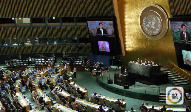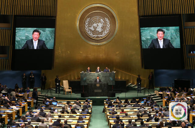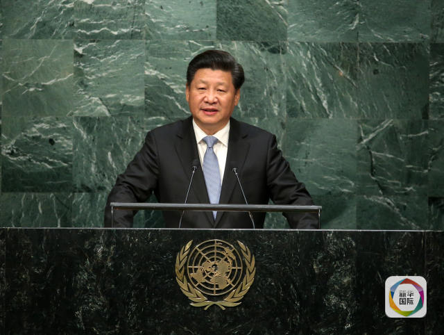 2015年9月28日,國家主席習近平在紐約聯合國總部出席第70屆聯合國大會一般性辯論并發表題為《攜手構建合作共贏新伙伴 同心打造人類命運共同體》的重要講話。新華社記者龐興雷攝