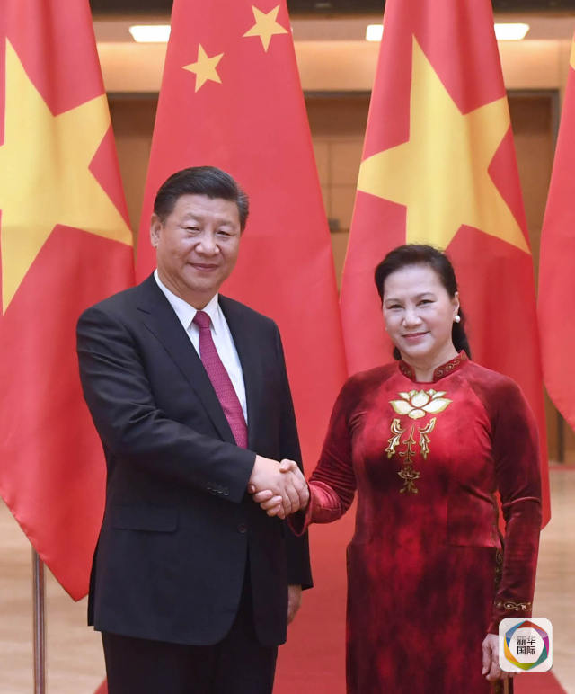 習近平在峴港會見了越南總理阮春福,在河內又分別與阮富仲、阮氏金銀和陳大光會談會見。兩國領導人共話友誼、共商合作、共謀發展,就新形勢下深化中越全面戰略合作伙伴關系達成重要共識。
