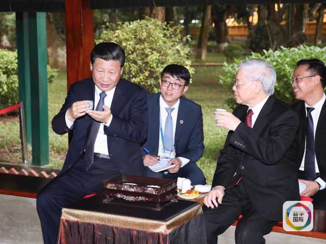 在胡志明故居,習近平總書記、國家主席同阮富仲總書記品茗暢談,承諾不忘中越傳統(tǒng)友誼的“初心”。