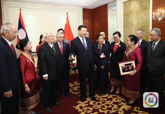 在萬象,習近平同奔舍那等家族友人親切見面、再敘友情,勉勵他們繼續(xù)投身中老友好事業(yè)。