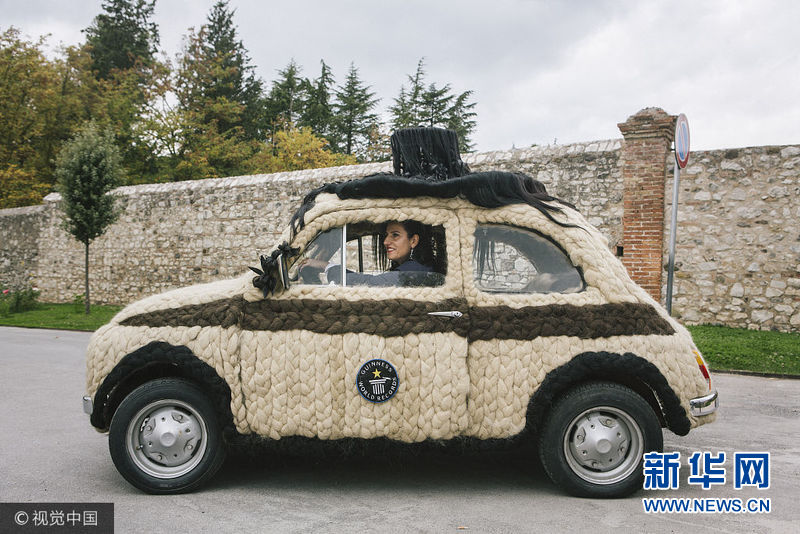 意大利帕杜拉,一位意大利發(fā)型設(shè)計師Maria Lucia Mugno花費了超過8萬英鎊來裝飾自己的車子,這讓她獲得了吉尼斯世界紀錄。這項工程需要150個小時來完成,用于裝飾的頭發(fā)總重量達到100公斤。(圖片來源:視覺中國)