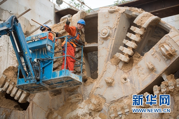 中國鐵建中土集團(tuán)實(shí)施的特拉維夫紅線輕軌首段盾構(gòu)隧道區(qū)間貫通現(xiàn)場。新華網(wǎng)發(fā)(郭昱 攝)