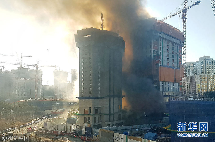 12月25日,韓國水原市,當地一處公寓施工現場發生火災,現場濃煙滾滾。(圖片來源:視覺中國)