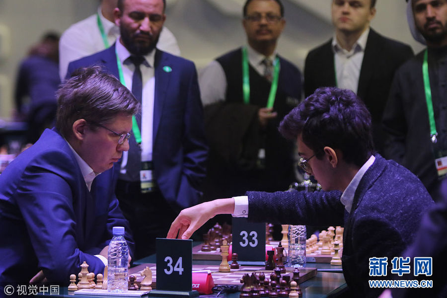 12月26日,沙特阿拉伯利雅得,世界快棋錦標(biāo)賽在當(dāng)?shù)嘏e行。國際象棋聯(lián)合會24日說,7名以色列選手因簽證申請?jiān)馍程匕⒗芙^無緣參賽。(圖片來源:視覺中國)