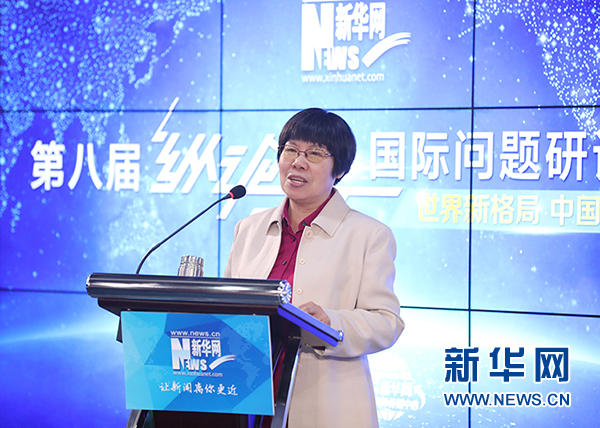 新華網第八屆“縱論天下”國際問題研討會近日成功舉行。圖為中國現代國際關系研究院研究員陳鳳英在發表主旨演講。新華網發 郭小天攝