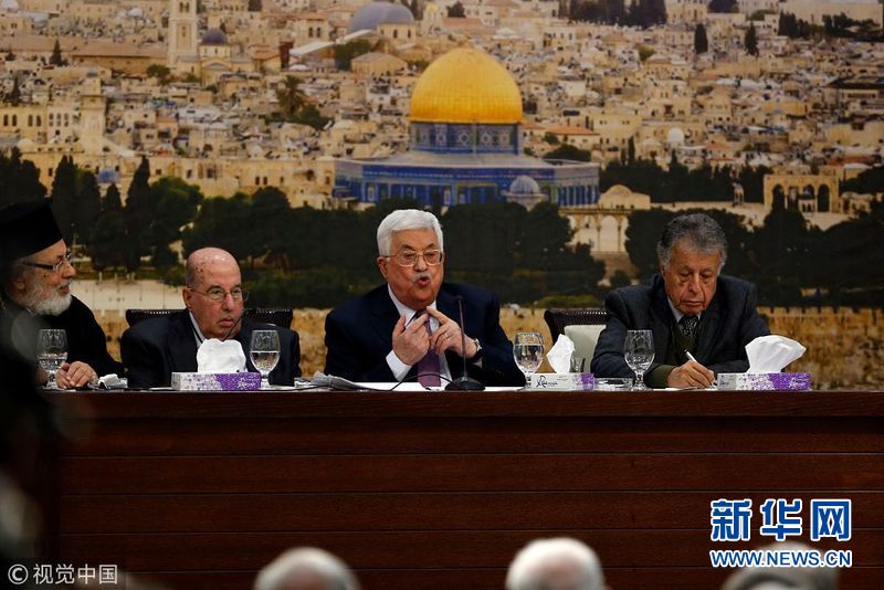 1月14日,約旦河西岸拉馬拉,巴勒斯坦總統(tǒng)阿巴斯在巴勒斯坦中央委員會(huì)會(huì)議上發(fā)表講話,并稱以色列已經(jīng)“終止”了奧斯陸協(xié)議。(圖片來源:視覺中國)