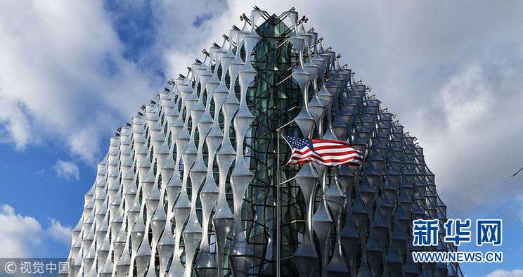 當(dāng)?shù)貢r(shí)間2018年1月16日,英國(guó)倫敦,位于倫敦的新美國(guó)駐英大使館16日開(kāi)始正式對(duì)外開(kāi)放。 (圖片來(lái)源:視覺(jué)中國(guó))