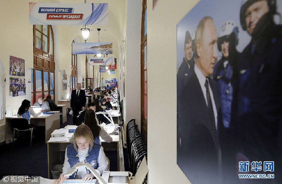 當地時間2018年1月17日,俄羅斯莫斯科,俄羅斯總統普京大選競選總部的志愿者核查收集到的支持普京參選的簽名。(圖片來源:視覺中國)