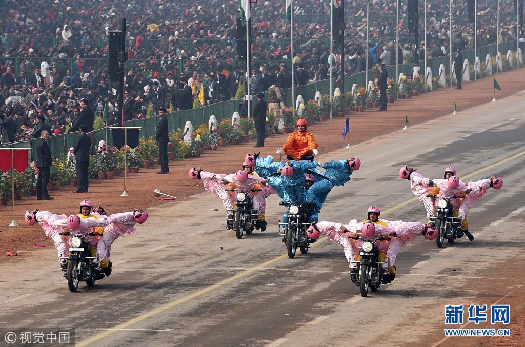 印度舉行閱兵游行慶祝第69個(gè)共和國(guó)日 摩托車隊(duì)再展“神技”