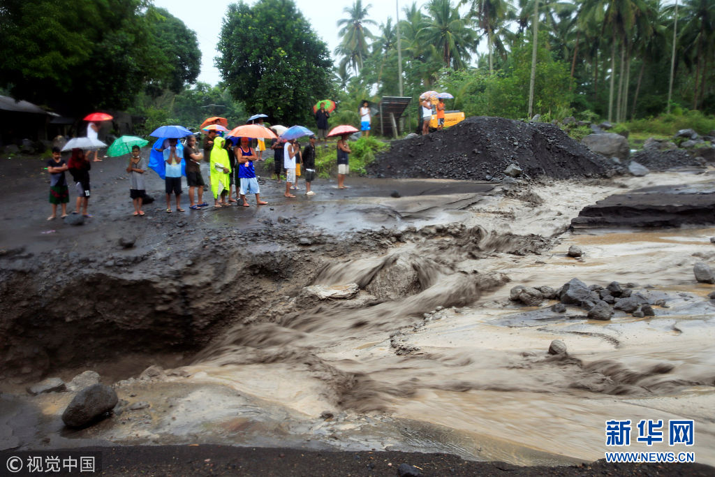 菲律賓馬榮火山持續噴發 火山灰落入河中變泥漿