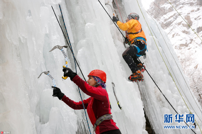 當地時間1月26日,伊朗Meygun,攀巖愛好者在Meygun冰上攀巖俱樂部挑戰冰瀑攀巖。據悉,Meygun冰上攀巖俱樂部每年都會迎來數千專業攀巖人士以及學生。(圖片來源:東方IC)