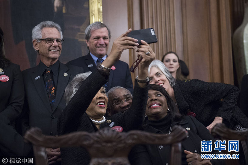 當(dāng)?shù)貢r(shí)間1月30日,美國(guó)華盛頓,民主黨國(guó)會(huì)議員和性侵幸存者一同穿黑衣現(xiàn)身國(guó)會(huì)大廈,聲援勇敢反對(duì)性騷擾和歧視的人們。眾議院民主黨人計(jì)劃穿黑衣出席特朗普的國(guó)情咨文演講,支持MeToo和TimesUp組織。 (圖片來源:視覺中國(guó))
