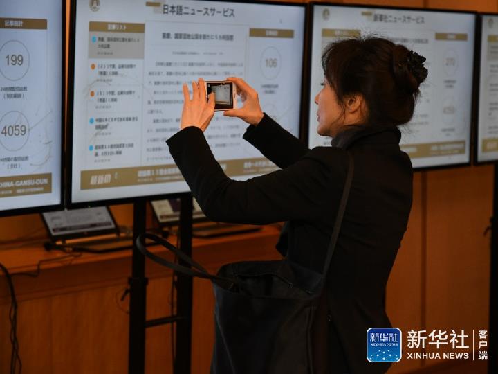 圖為嘉賓觀看新華社新聞信息產(chǎn)品展示。