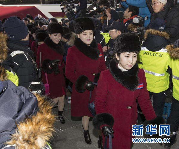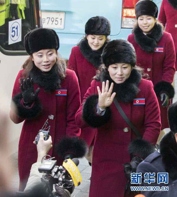 2月7日,朝鮮拉拉隊成員乘車到達(dá)韓國江原道麟蹄郡。當(dāng)日,參加平昌冬奧會的朝鮮拉拉隊、跆拳道示范團(tuán)、記者團(tuán)和民族奧林匹克委員會官員等一行280人經(jīng)由京義線陸路抵達(dá)韓國境內(nèi)。新華社發(fā)(李相浩攝)