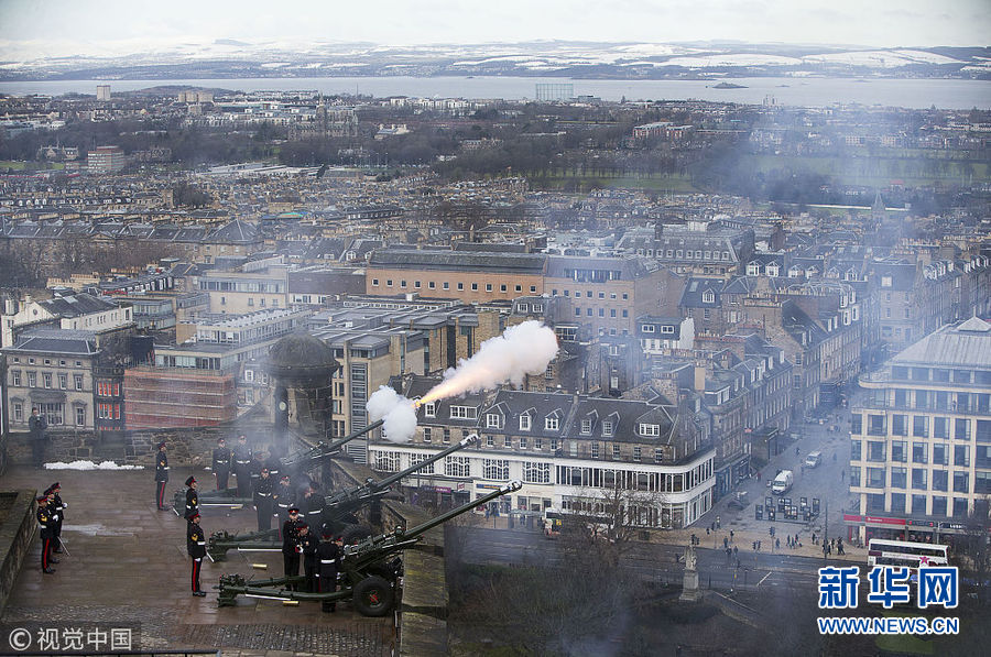 英國皇家炮兵在愛丁堡城堡鳴響21響禮炮 紀念女王登基66周年