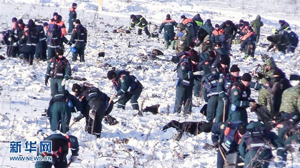 這張俄羅斯緊急情況部2月12日提供的視頻截圖顯示,俄緊急情況部工作人員在莫斯科州墜機現場工作。俄羅斯緊急情況部官網11日發布消息說,當天在莫斯科州墜毀的安-148客機上的總共6名機組人員和65名乘客,其中包括3名兒童,全部遇難。新華社/衛星社