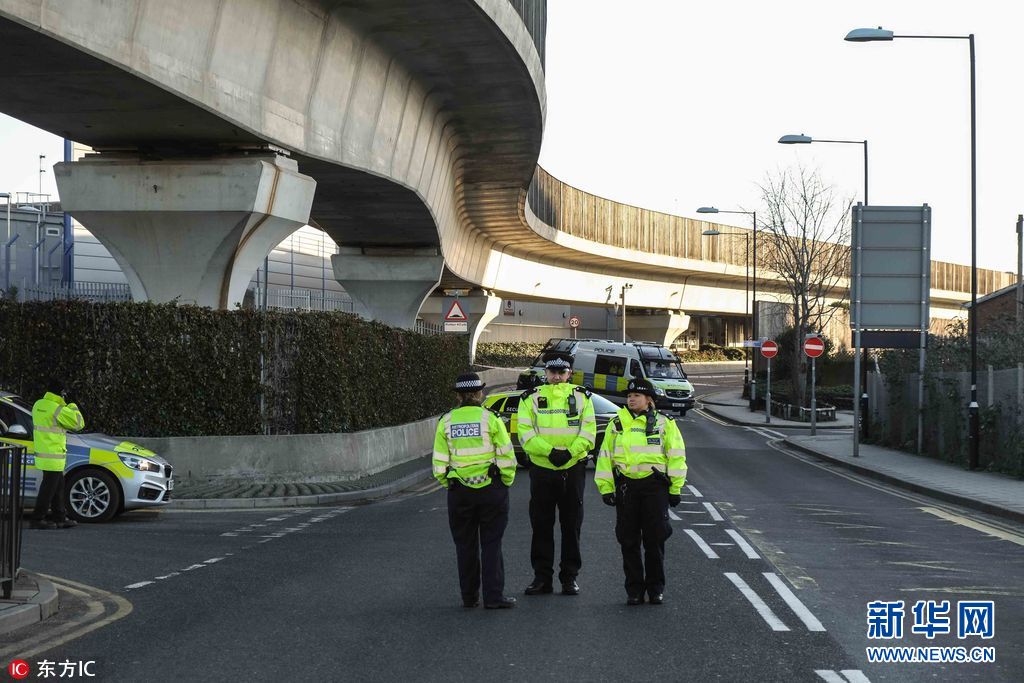 當(dāng)?shù)貢r間2018年2月12日,英國倫敦,倫敦城市機(jī)場附近泰晤士河道內(nèi)發(fā)現(xiàn)一枚二戰(zhàn)遺留炸彈,警方封鎖現(xiàn)場。機(jī)場被迫關(guān)閉,航班取消。(圖片來源:東方IC)