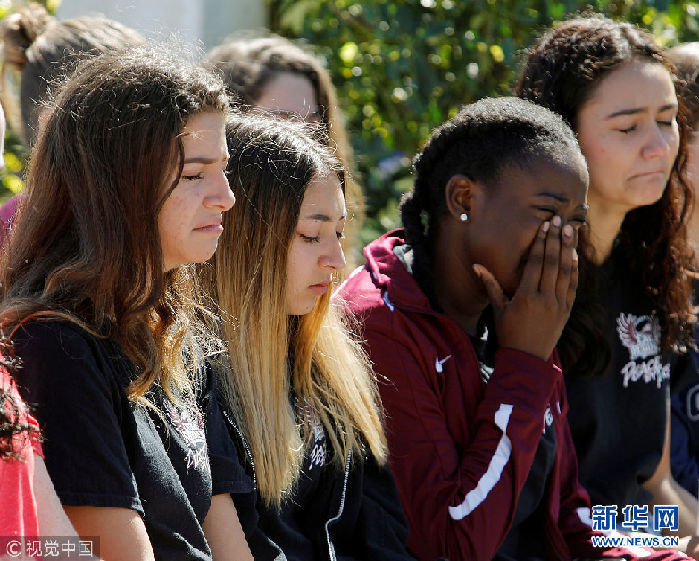 當地時間2018年2月15日,美國佛羅里達州波姆龐帕諾灘,民眾悼念槍擊案遇難者。當地時間14日下午2點25分左右,美國佛羅里達州南部帕克蘭一所高中發生槍擊案,目前已致至少17人死亡,多人受傷。(圖片來源:視覺中國)