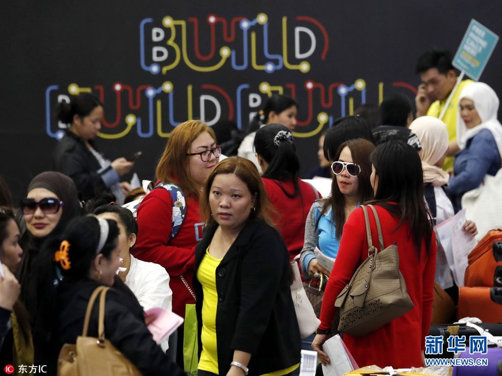 當地時間2018年2月21日,菲律賓馬尼拉,從科威特返回的菲律賓海外勞工抵達馬尼拉國際機場。據外媒報道,宿霧太平洋航空公司為至少396名海外菲律賓工人提供空運支持,助其免費搭乘飛機回家。據悉,菲律賓政府已下令禁止民眾前往科威特務工。據悉,菲律賓總統杜特爾特稱,近來有在科威特打工的菲律賓女傭因不堪虐待或性侵選擇自殺。(圖片來源: 東方IC)