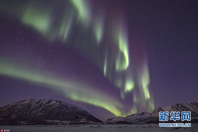 2月19日,英國攝影師拍攝下一組絕美的北極光照片。Paul Goldstein是一位來自英國溫布爾頓的導游,他領著18名“極光獵人”組成的團隊在北極圈內捕捉北極光,然后在挪威冰封的峽灣地區(qū)拍攝下這些令人驚嘆照片。畫面中,美麗的北極光如一條條綠色的條紋帶在夜空舞動,美得令人窒息。(圖片來源:東方IC)