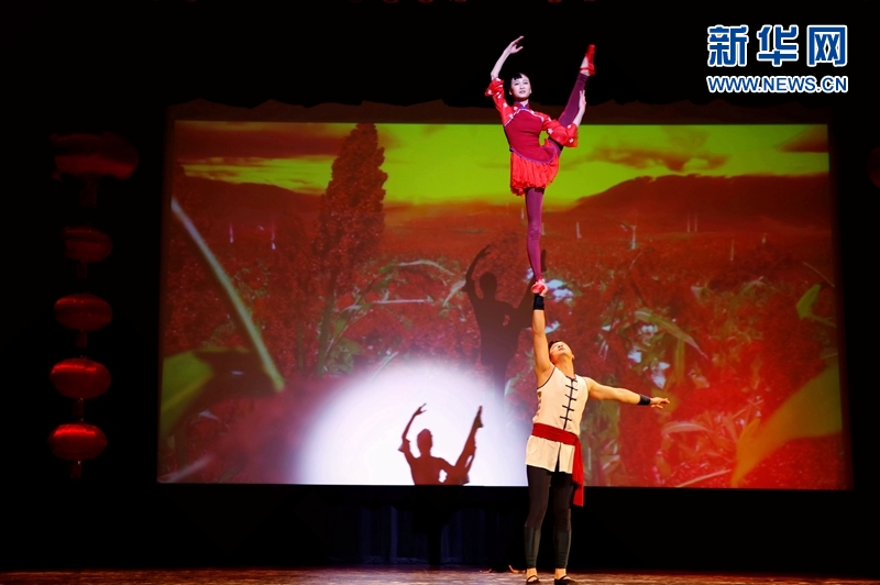 3月2日,在美國密歇根州底特律市,廣東省藝術團的演員在2018年“歡樂春節(jié)--祖國陪你過年”活動中表演雜技《肩上芭蕾》。新華網(wǎng)發(fā)(圖片由中國駐芝加哥總領館提供)
