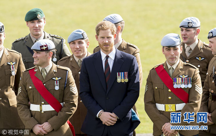 當地時間2018年3月16日,英國中沃勒普,英國哈里王子出席12名飛行員學員頒授飛行徽章儀式。(圖片來源:視覺中國)