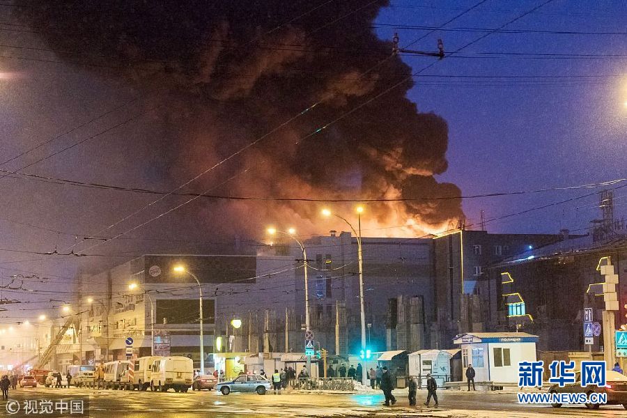 當地時間2018年3月25日,俄羅斯西西伯利亞南部城市克麥羅沃一家購物中心25日發生的重大火災的死亡人數已升至37人。此外,火災還造成43人受傷,約70人仍下落不明。(圖片來源:視覺中國)