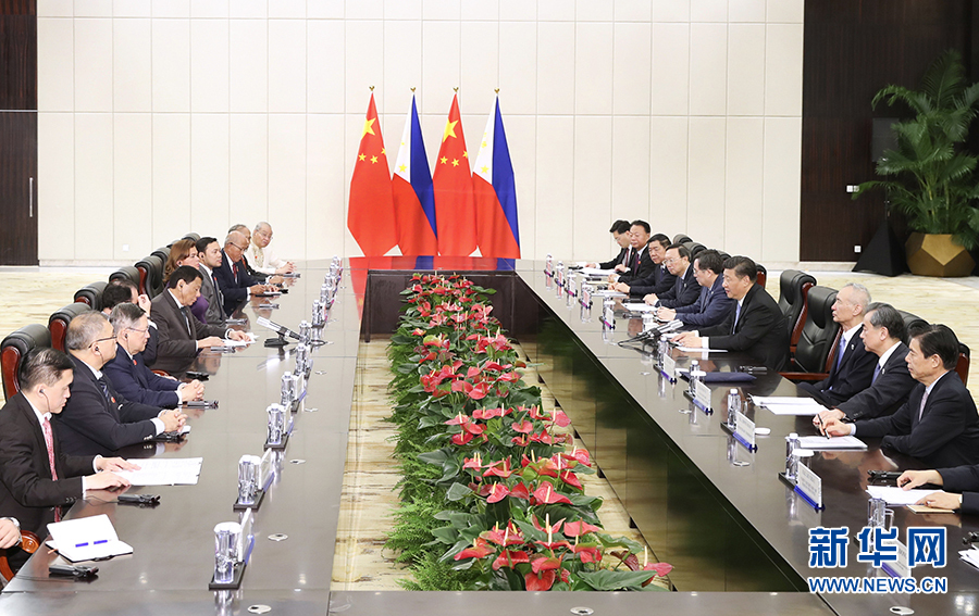 習(xí)近平指出,杜特爾特總統(tǒng)就任以來(lái),中菲關(guān)系翻開新篇章。中方愿同菲方一道,堅(jiān)持睦鄰友好的大方向,確立共同發(fā)展的大目標(biāo),發(fā)揚(yáng)妥處分歧的大智慧,確保中菲關(guān)系始終沿著正確方向健康穩(wěn)定發(fā)展。