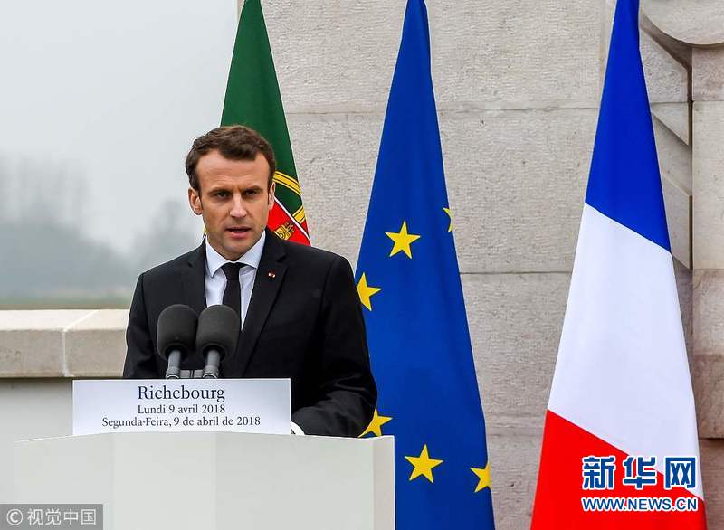4月9日,法國里什堡,法國總統馬克龍和葡萄牙總統馬塞洛·雷貝洛·德索薩在一戰葡萄牙公墓出席一戰紀念儀式,紀念利斯戰役百年。(圖片來源:視覺中國)