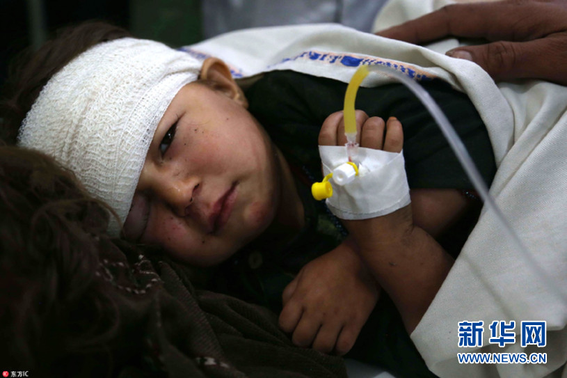 當地時間2018年4月20日,阿富汗賈拉拉巴德,受傷的兒童在醫院接受治療。4月19日,當地發生爆炸事故,致至少5名平民死亡,14人受傷。(圖片來源:東方IC)