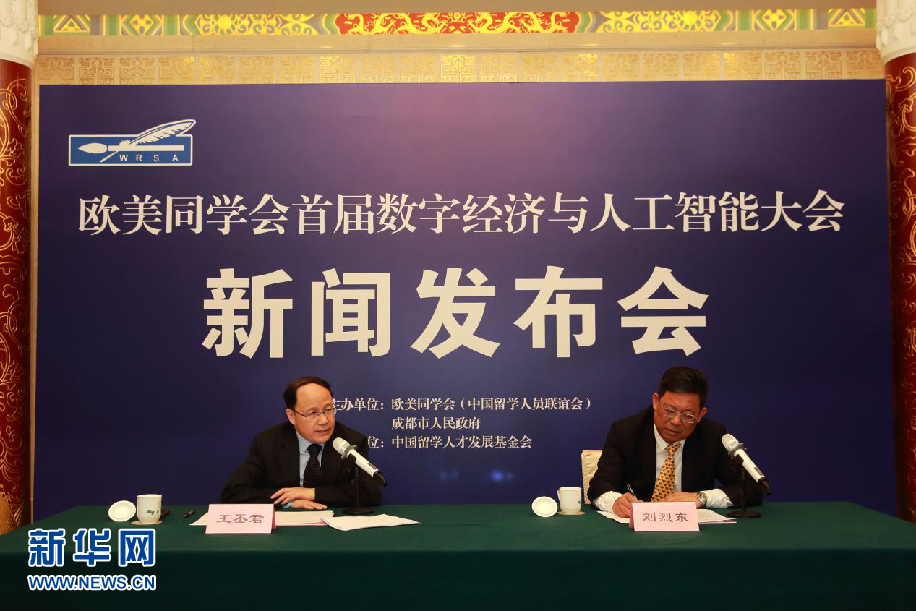 新華網北京4月28日電(郝斐然 王一諾)歐美同學會首屆“數字經濟與人工智能”大會新聞發布會28日在京舉行。歐美同學會黨組書記、秘書長王丕君和成都市副市長劉烈東介紹大會有關情況。