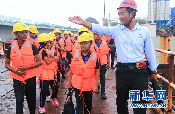 “大橋還有多久能建好?”“建橋是不是很難?”“工人叔叔們有沒有危險?”……孩子們整齊地排成兩列走在大橋上,一邊好奇地四處望著,一邊連珠炮似的向身邊的中國工人叔叔發問。