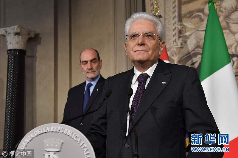 當地時間2018年5月7日,意大利羅馬,意大利總統塞爾焦·馬塔雷拉7日召集新一輪組閣談判并出席新聞發布會。如果所有組閣努力失敗,馬塔雷拉將授權組建技術官僚組成的過渡政府。(圖片來源:視覺中國)