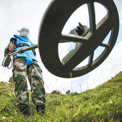 中國維和部隊軍人在黎巴嫩南部進行清排探測作業。資料照片(新華社發)