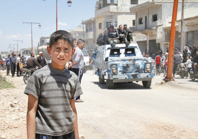 5月16日,隨著最后一批反政府武裝人員當天從霍姆斯省北部撤離,敘政府已全面收復中部省份霍姆斯。圖為當天在霍姆斯省賴斯坦街頭的一名男孩。新華社發
